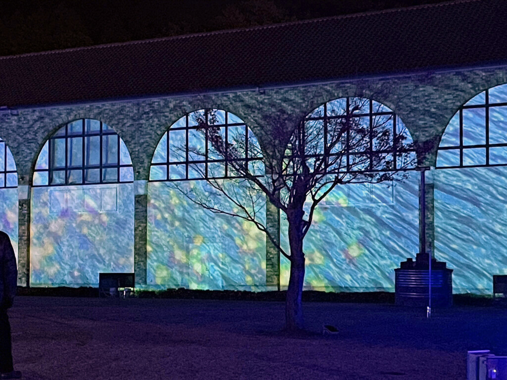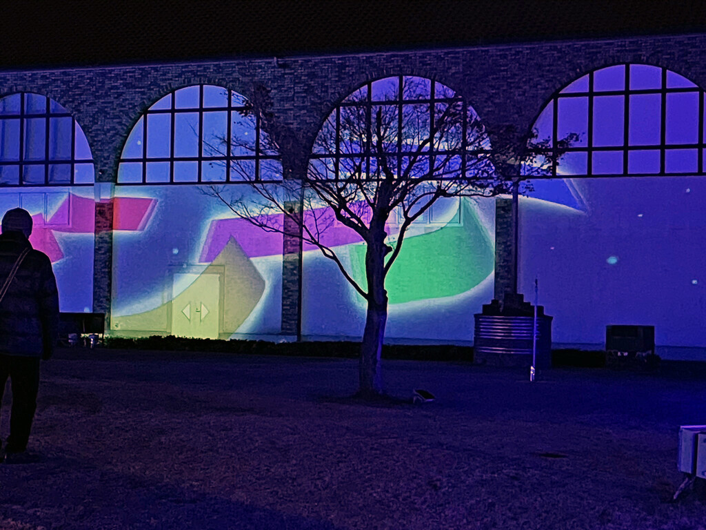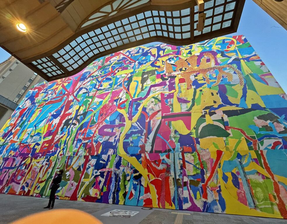 大竹伸朗氏による巨大なアート作品で囲われています。